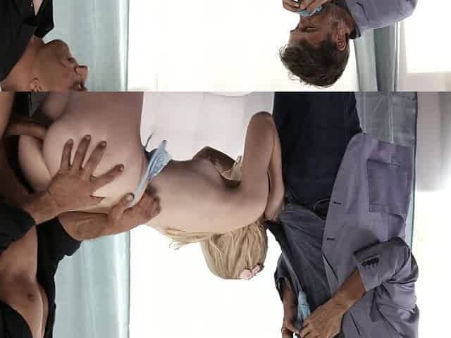 Being Caught Masturbating by the Contractors Made the Blonde Asian Crave a Threesome with DP
