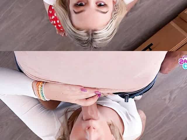Young blonde Samantha Jolie gets double teamed and faces the pleasure of two huge lollipops