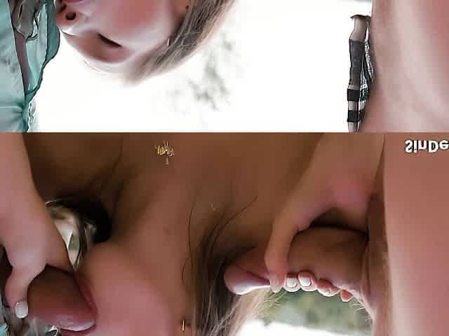 Hardcore double blonde blowjob