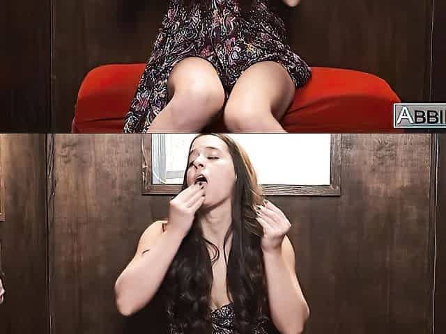 Adorable brunette Abbie Maley is sucking multiple big cocks