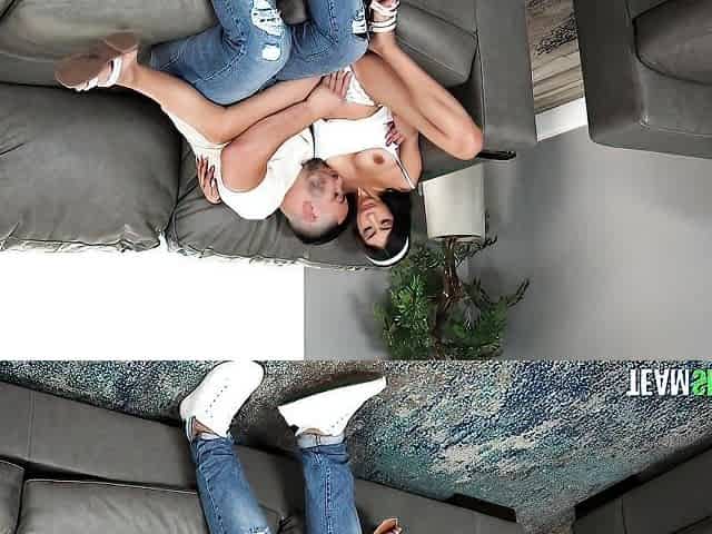 Amateur Gonzo babe 3way drilled at home till cum on tits