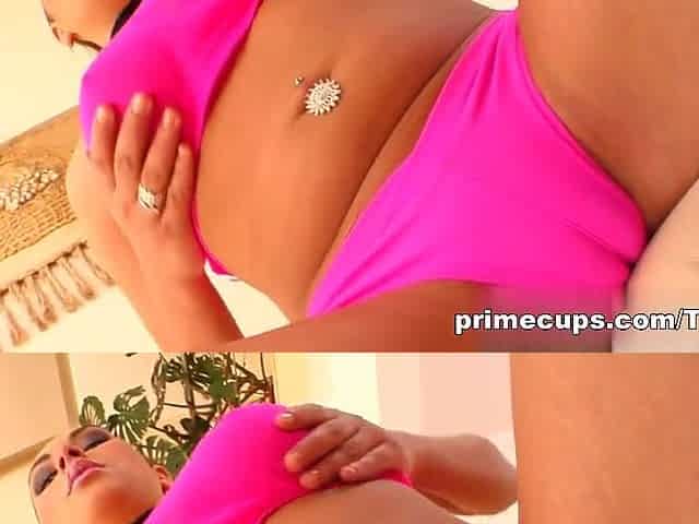 IR loving medium titted BJ babe enjoys DP MMF ***on pool