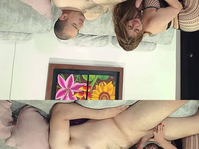 POV homemade threesome with double blowjob and handjob - Cumshot