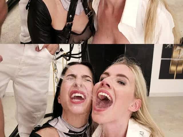 Group sex hardcore double blowjob swallowing cum