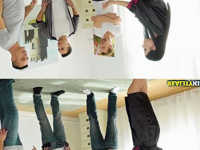 Fanky Town, 18-year-old brunette gets fucked by two guys in her holes.