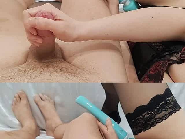 Masturbation with wife. double orgasm. play with oversensitive glans