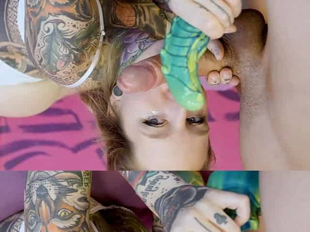 Tattooed girl Lisa Rocketcock DEEP THROAT fucked and DP