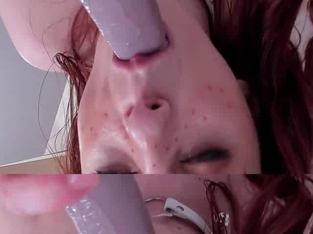 "Amateur wife gets her tight pussy mayo-pied and her mouth pounded by a 10"" dildo on camera"