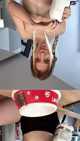 "Cute Kitty Drinks Milk from a Bowl Absolutely Naked "
