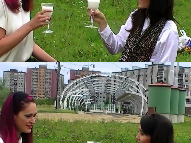 German blondes, Rosella and Tina are drinking recent pee and getting banged hard, during a three-some