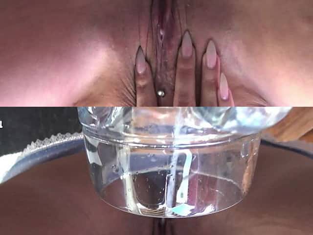Girl squirts in her pussy pump and drinks it