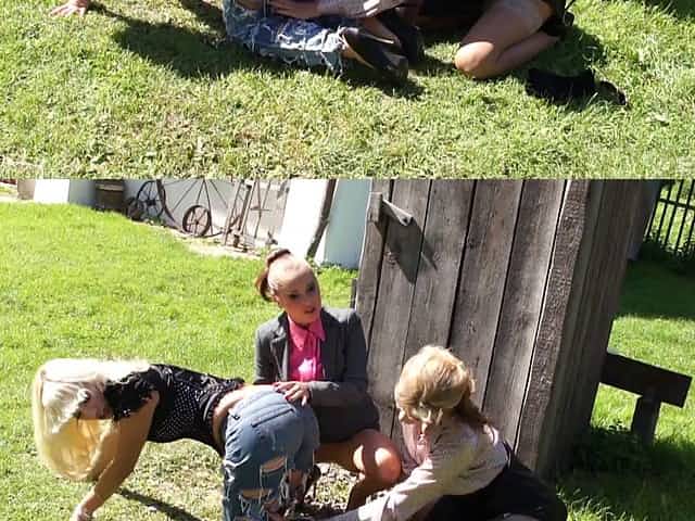 Long haired blonde drinks from the massive penis and goes knees down for a thrilling anal throbbing