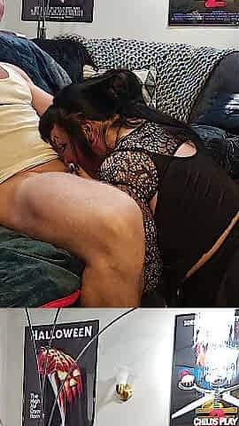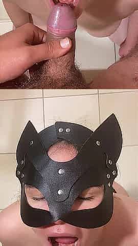 That guy bangs her in the backdoor and than that babe gives him a head and drink goo