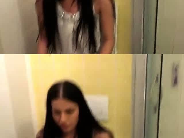 Cutie having group sex and sperm bathroom