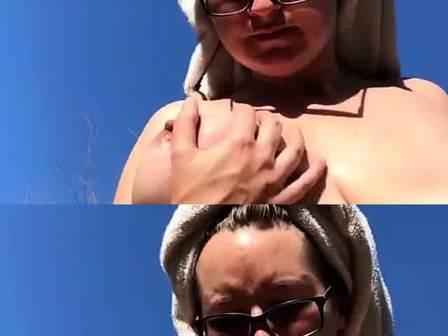 Amateur MILF drinks morning coffee and oils her nice Big Tit
