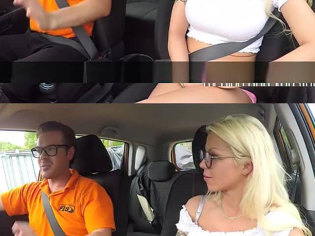 Fake Driving School Busty blonde Barbie Sins wants learners cum on test