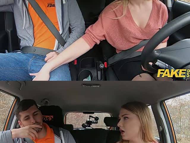 Instructor cums on blonde driving student