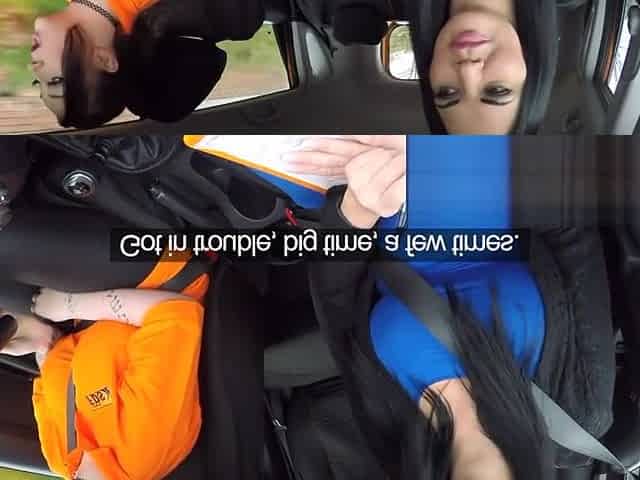 Fake Driving School Jailbird with big tits eats shaven pussy