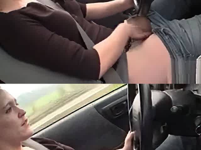 Blonde uk girl gives her man a blowjob, while he's driving on the highway.