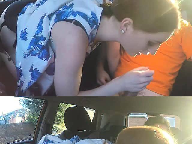 german skinny redhead teen blowjob in public while driving