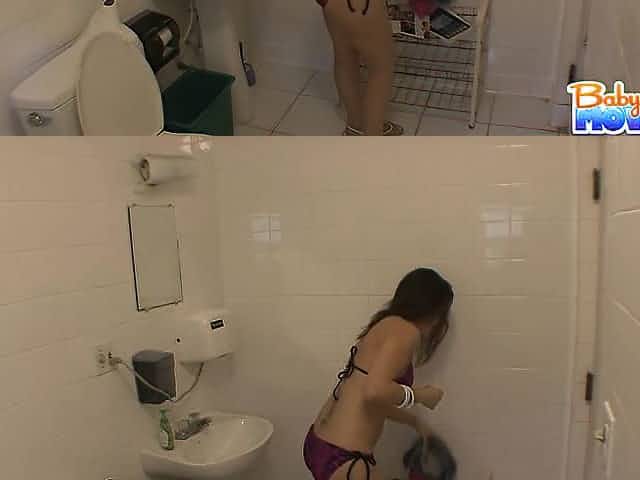 Busty blonde polesmoking and driving in toilet