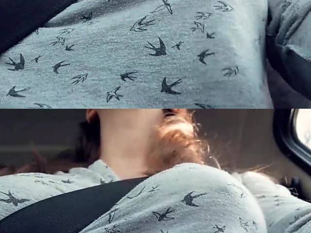 Laura driving with her tits out
