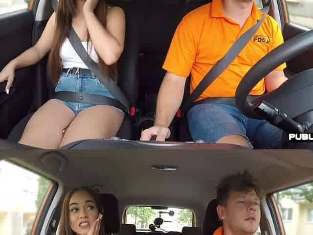 Fake driving school class turned into lustful fucking in a car