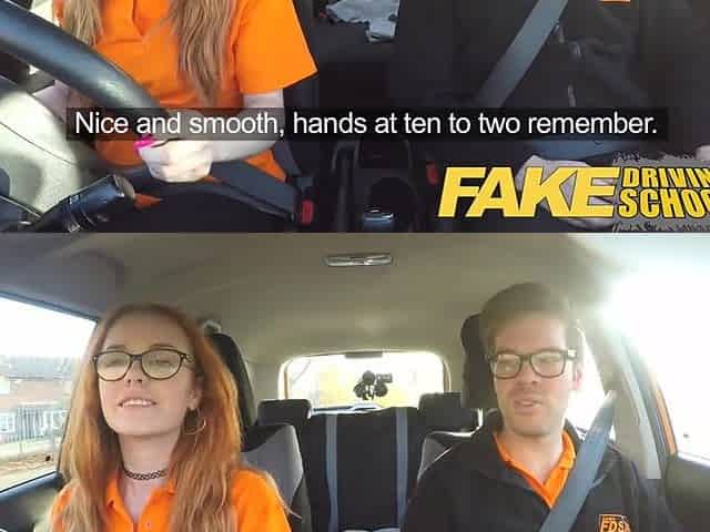 Fake Driving School - Nerdy looking British playgirl with great butt