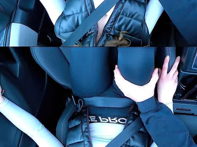 Busty driving babe gets pussy licked by Be4, cock riding tutor in car