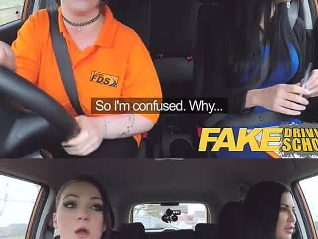 Fake Driving School Breasty lesbo ex-con eats hawt examiners
