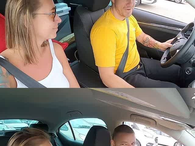 Busty driving babe gets pussy licked by Be4, cock riding tutor in car