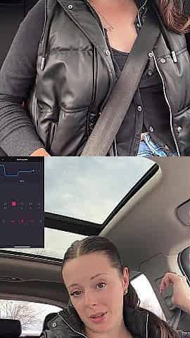 4K - MILF in Lingerie Stockings and Leather Skirt Jerks off with a Sex Toy, in Her Car While Driving
