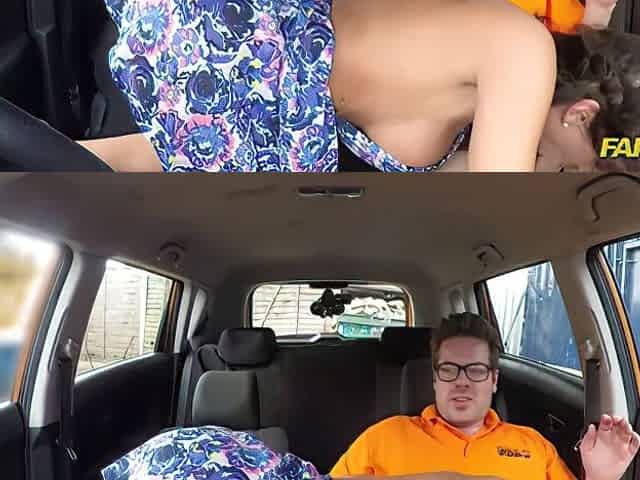 Bosomy mother I'd like to fuck rides driving instructor in the car outdoor