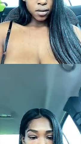 Large titted gal is wearing a very loose costume whilst driving and no pants at all