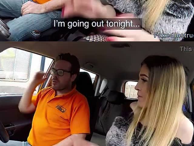 Lascivious blond beauty is getting banged in the car instead of having a driving class