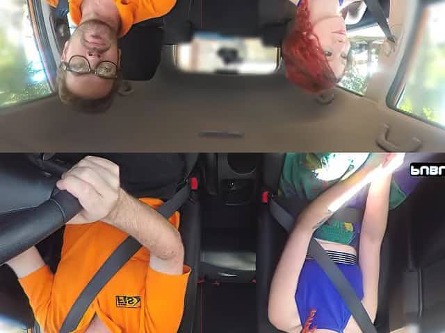 Marilyn Sugar is blowing her driving instructor's meatpipe in the van before having bang-out with him