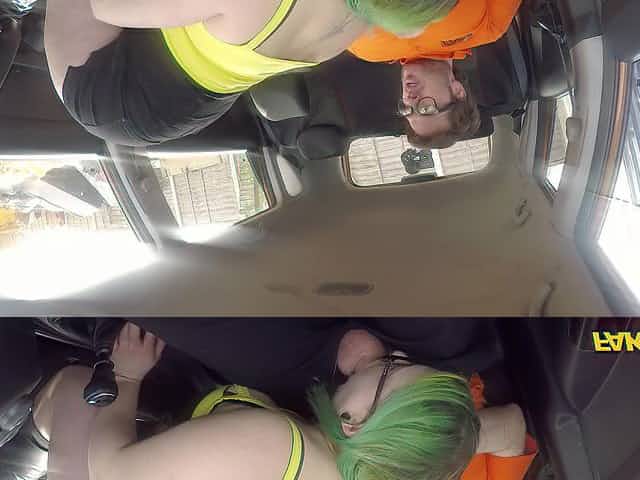 A busty nerdy girl takes a driving lesson with hard fucking.