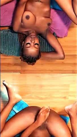 Hot black sweetheart drank large penis and enjoyed coarse cunt banging with roommate