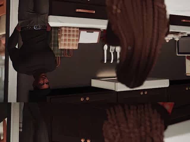 Ebony Latex Rubber Catsuit Selfie SmartPhone Movie scene