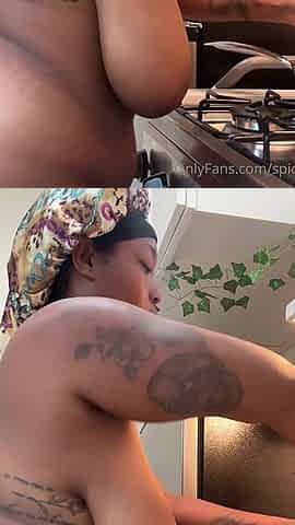 Ebony Big Booty Twerked Naked at the Kitchen While Cooking