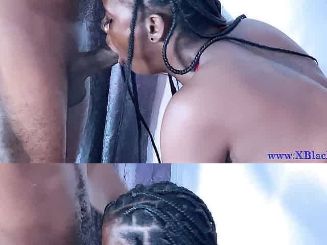 20yo Ebony Girl with a Big Round Ass Sucks Cock & Gets Boned by a Black Guy with a Long Dick and She Likes It Very Much, Leaves