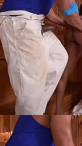 Ebony Sauna Seduction Wild Blowjob and Pussy Pound