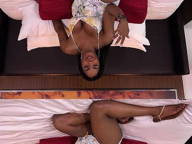 Guess whose penis is banging the sexy ebony angel's throat, booty, and vagina.
