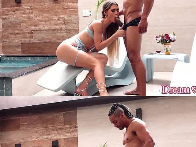 TS Leticia Muller Entice The Ebony Pool Stud Into Reaming Her Butt