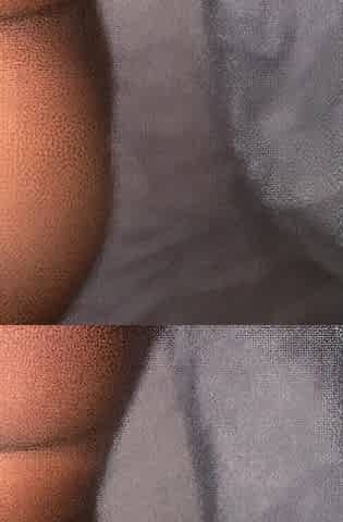 Busty brunette BBW lesbo licking ebony pussy in close up
