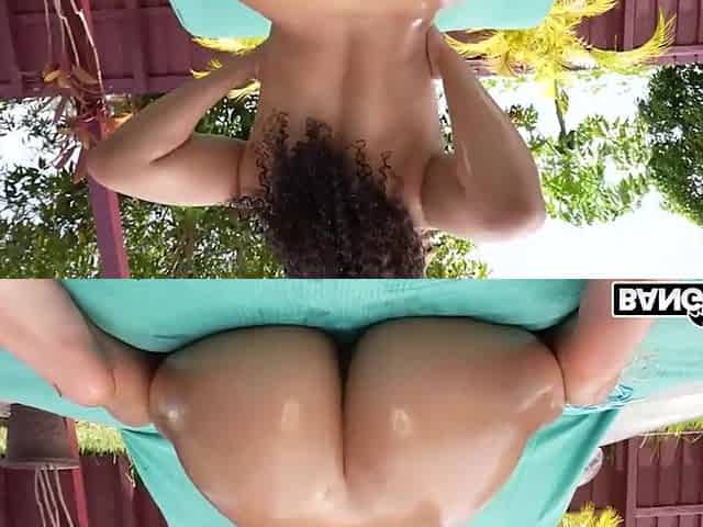 Curvy butt shaking and pov face sitting in ebony leggins and shiny spandex leggins