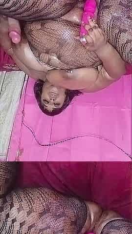 Black bangs her obese vagina with giant white vibrator untill this babe Squirts