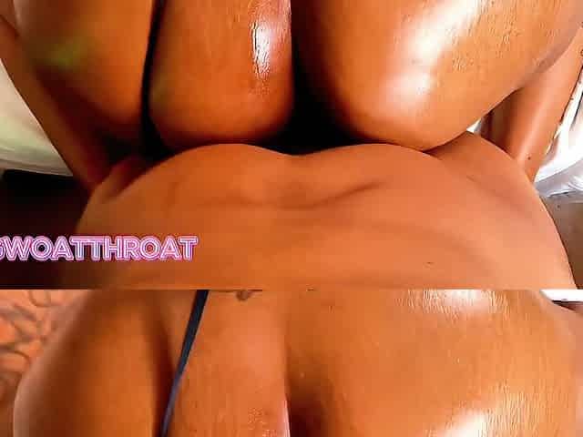 Large black mother I'd like to fuck gets her throat, melons, and snatch drilled