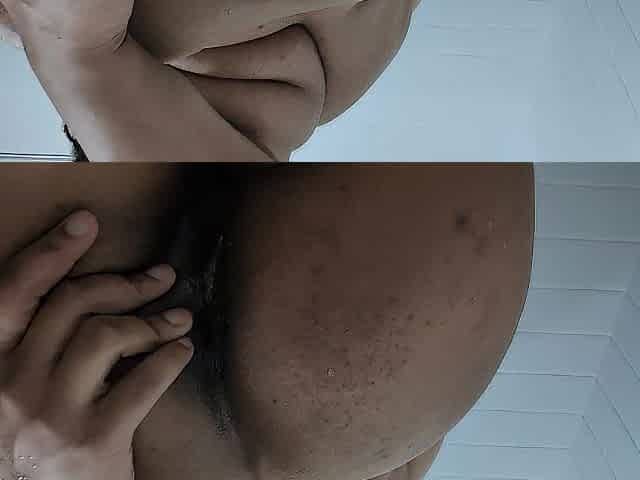 Amateur black Diamond takes a shower and masturbates