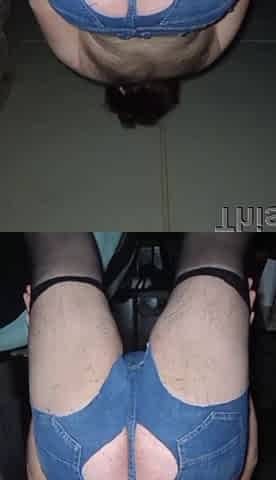 A chubby-assed homo dude strokes his schlong in ripped denim shorts and ebony nylons!